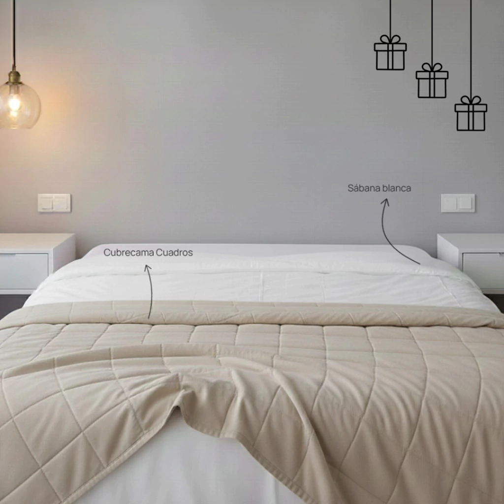Cubre Cama Cuadros Beige
