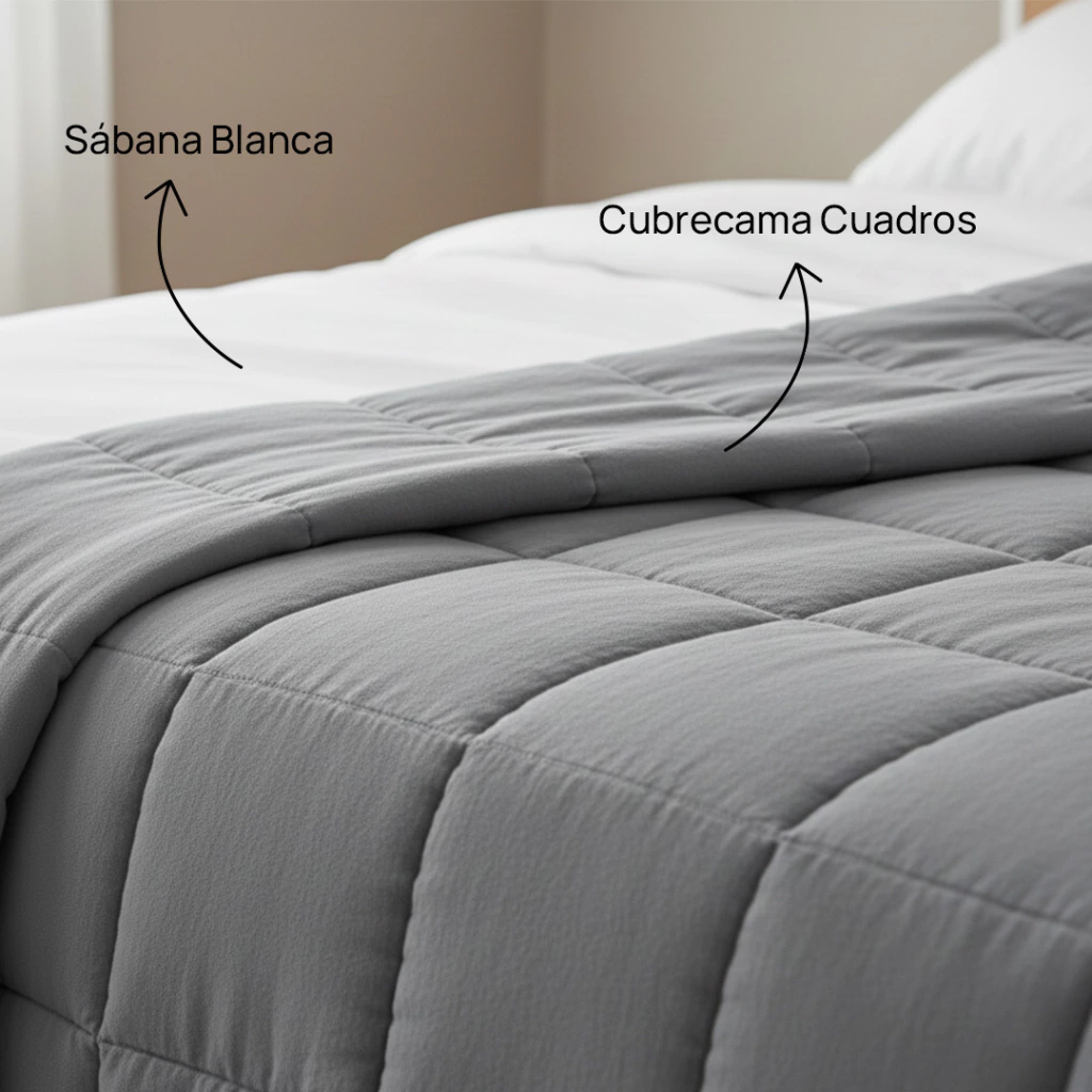 Cubre Cama Gris Oscuro + Juego de Sábanas color Blanco