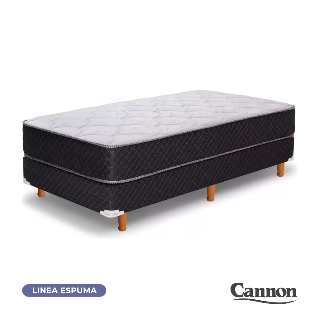 Por otra parte viene acompañado por una base de madera estacionada, marca Cannon, revestida en tela jackard , matelaseada.
